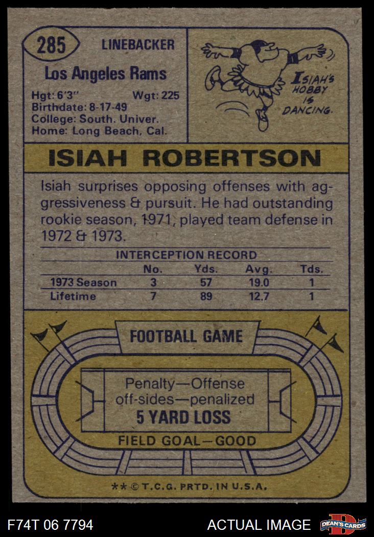 1974 Topps #285 Isiah Robertson 7 - NM