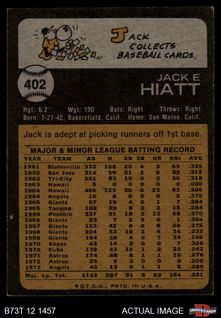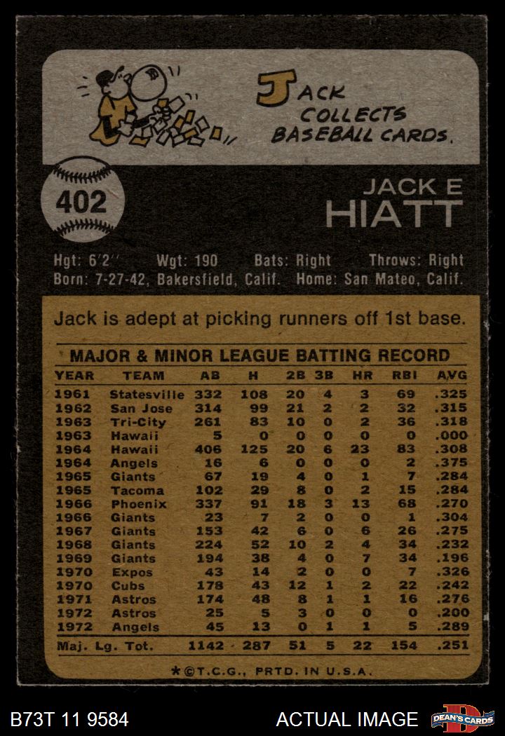 1973 Topps #402 Jack Hiatt