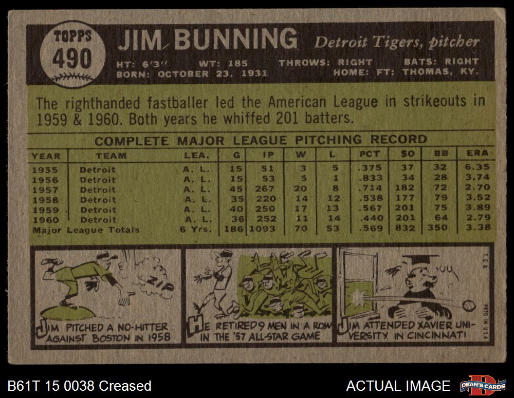 1961 Topps #490 Jim Bunning 2 - GOOD