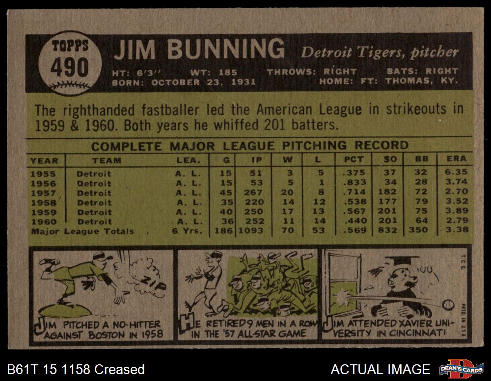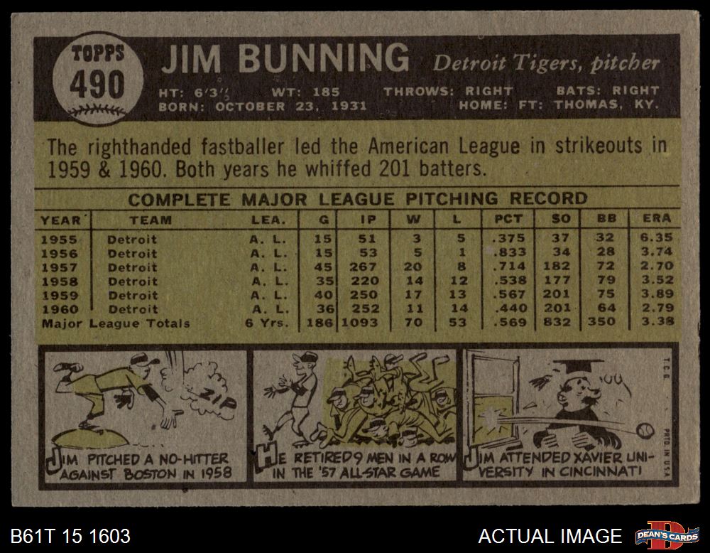 1961 Topps #490 Jim Bunning Front Thumbnail