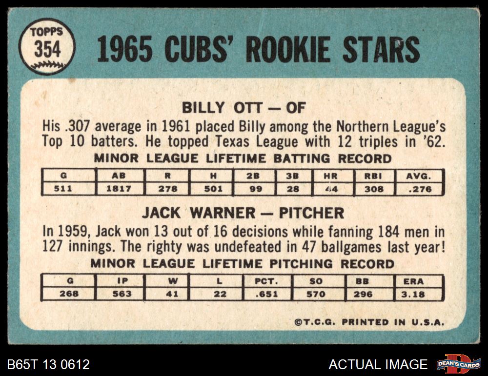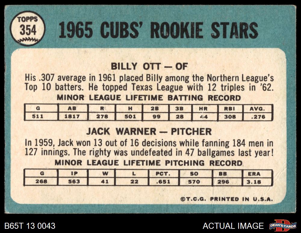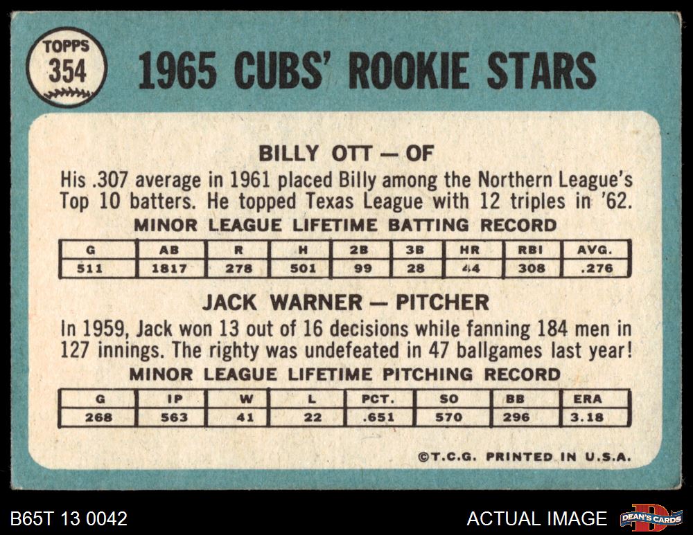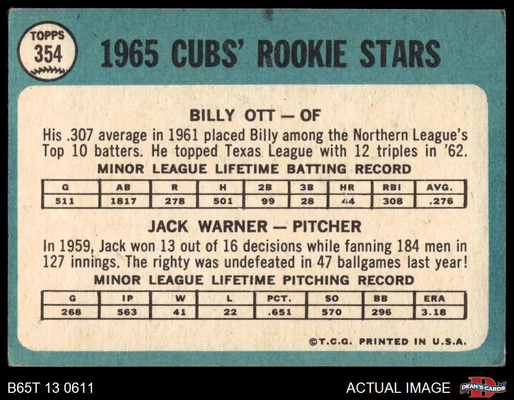 1965 Topps #354 - Billy Ott / Jack Warner Cubs Rookies 3 - VG