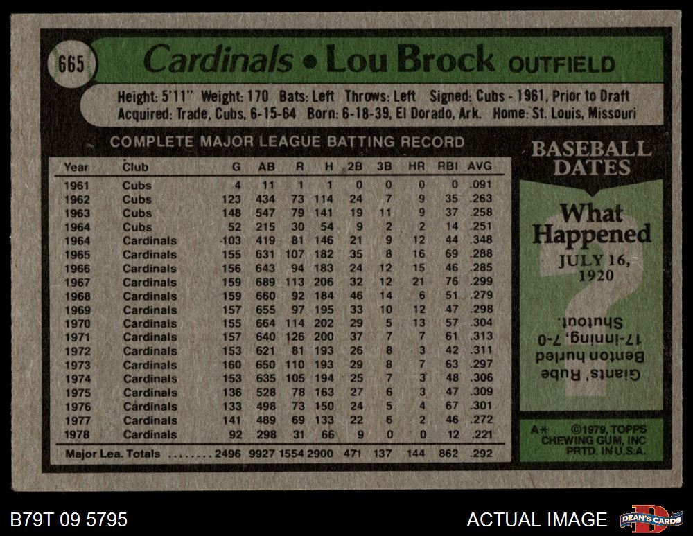 1979 Topps #665 Lou Brock 3 - VG