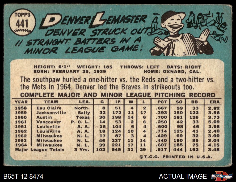 1965 Topps #441 Denver Lemaster 1.5 - FAIR