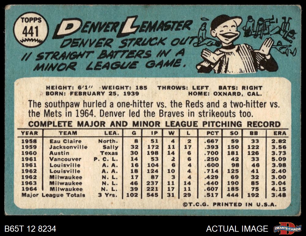 1965 Topps #441 Denver Lemaster 2 - GOOD