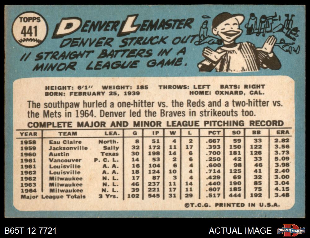 1965 Topps #441 Denver Lemaster 4 - VG/EX