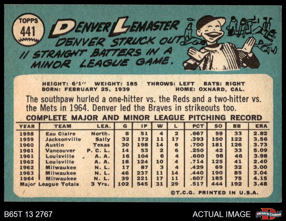 1965 Topps #441 Denver Lemaster 5.5 - EX+