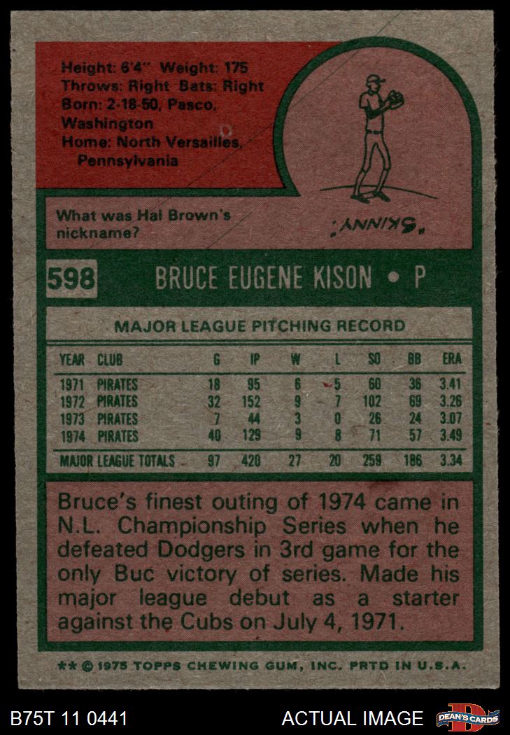 1975 Topps #598 Bruce Kison 6.5 - EX/MT+