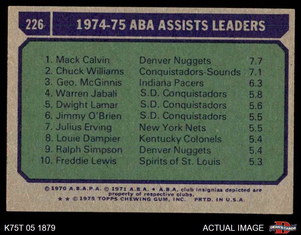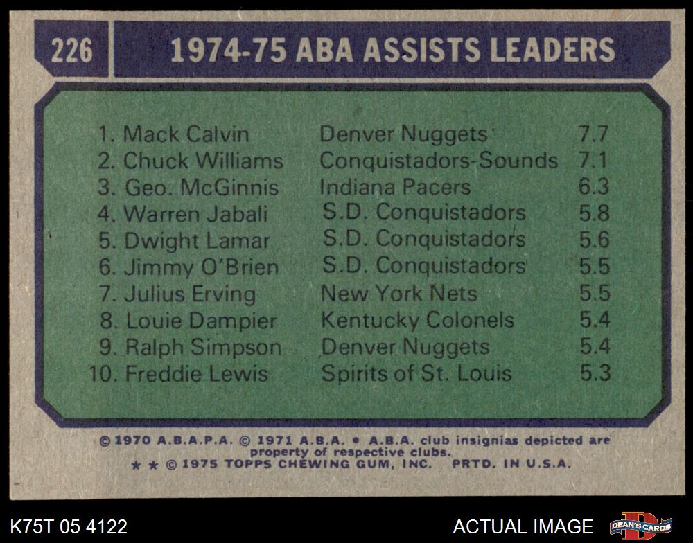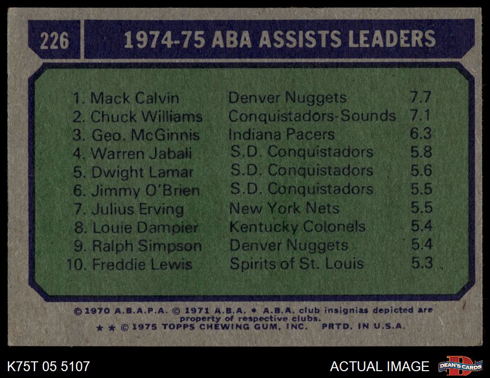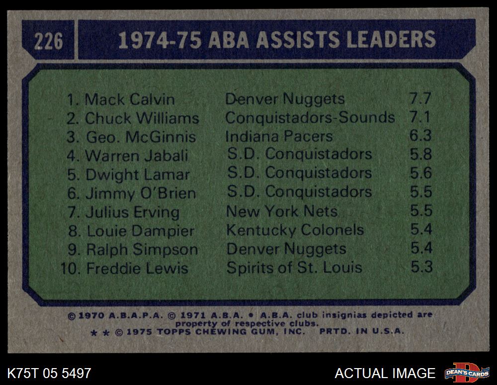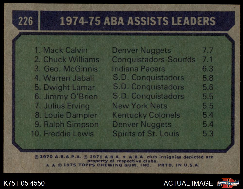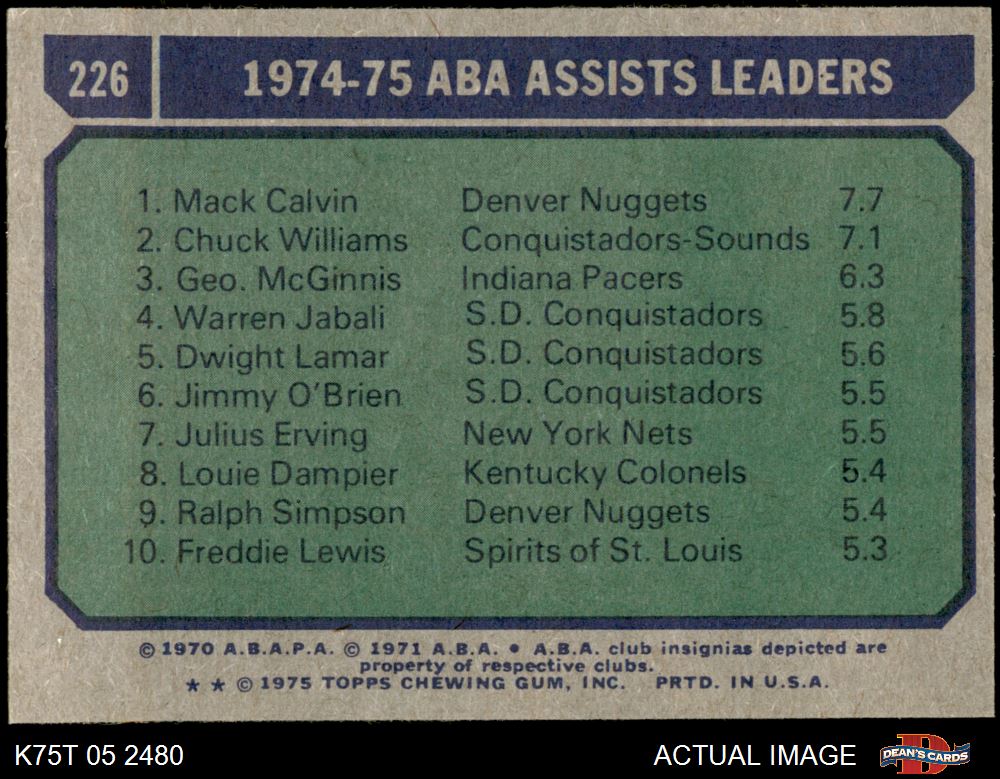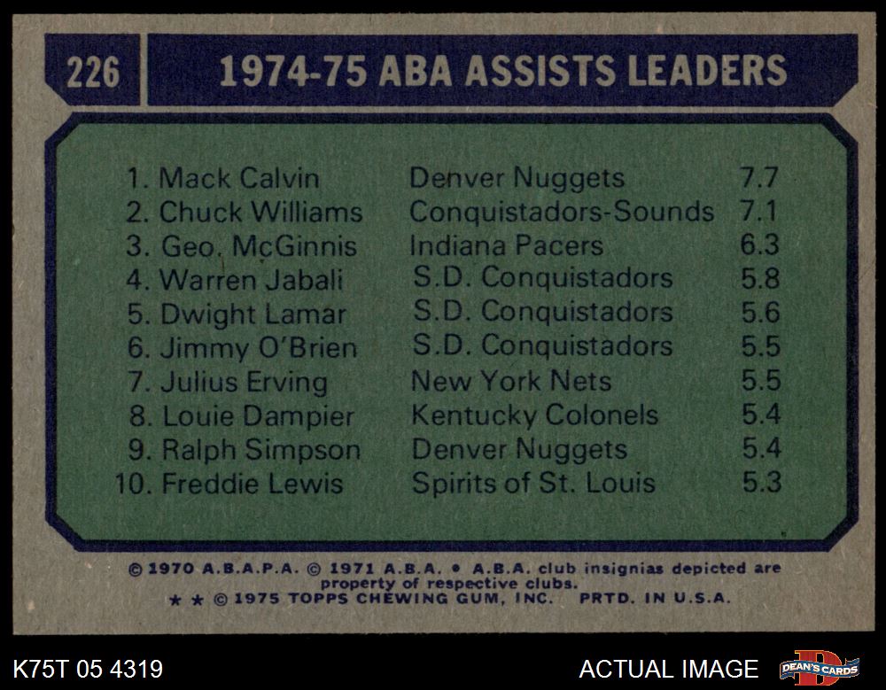 1975-76 Topps Basketball Cards (2,887 available)1975 Topps Nuggets / Sounds (Pros) / Pacers (8 available)