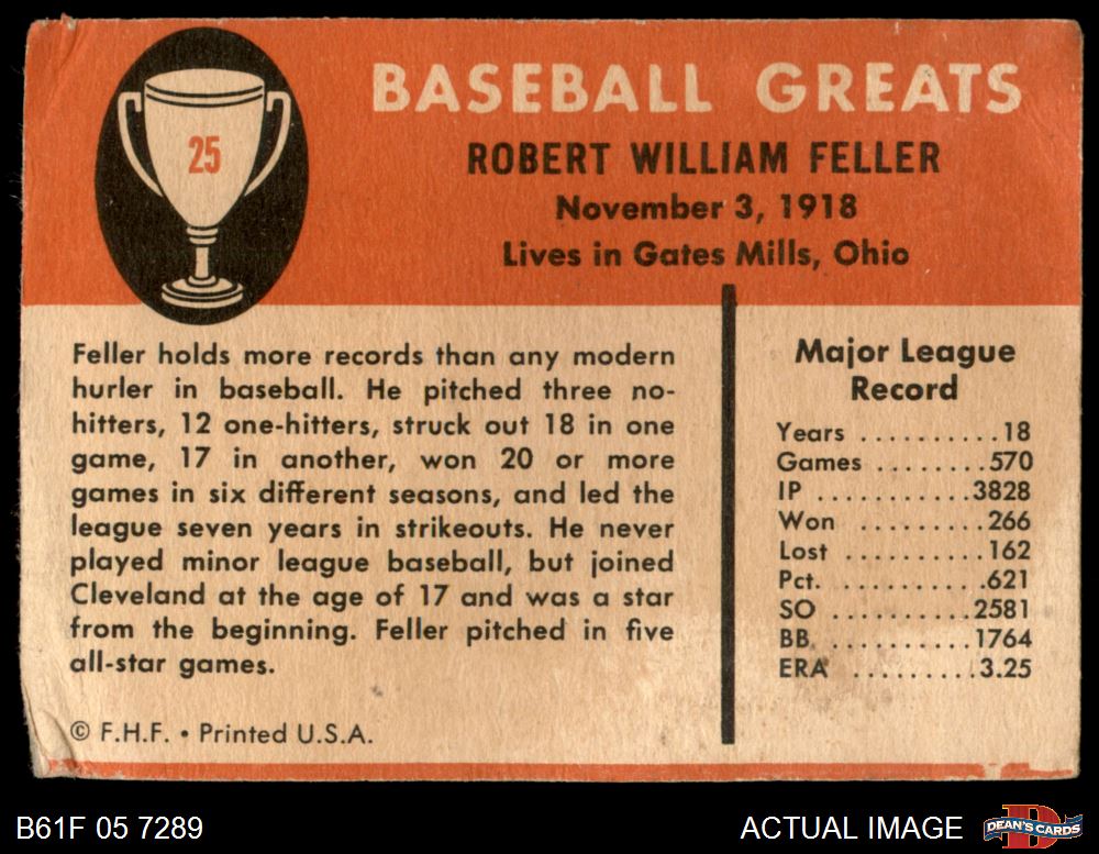 1961 Fleer #25 Bob Feller 1 - POOR