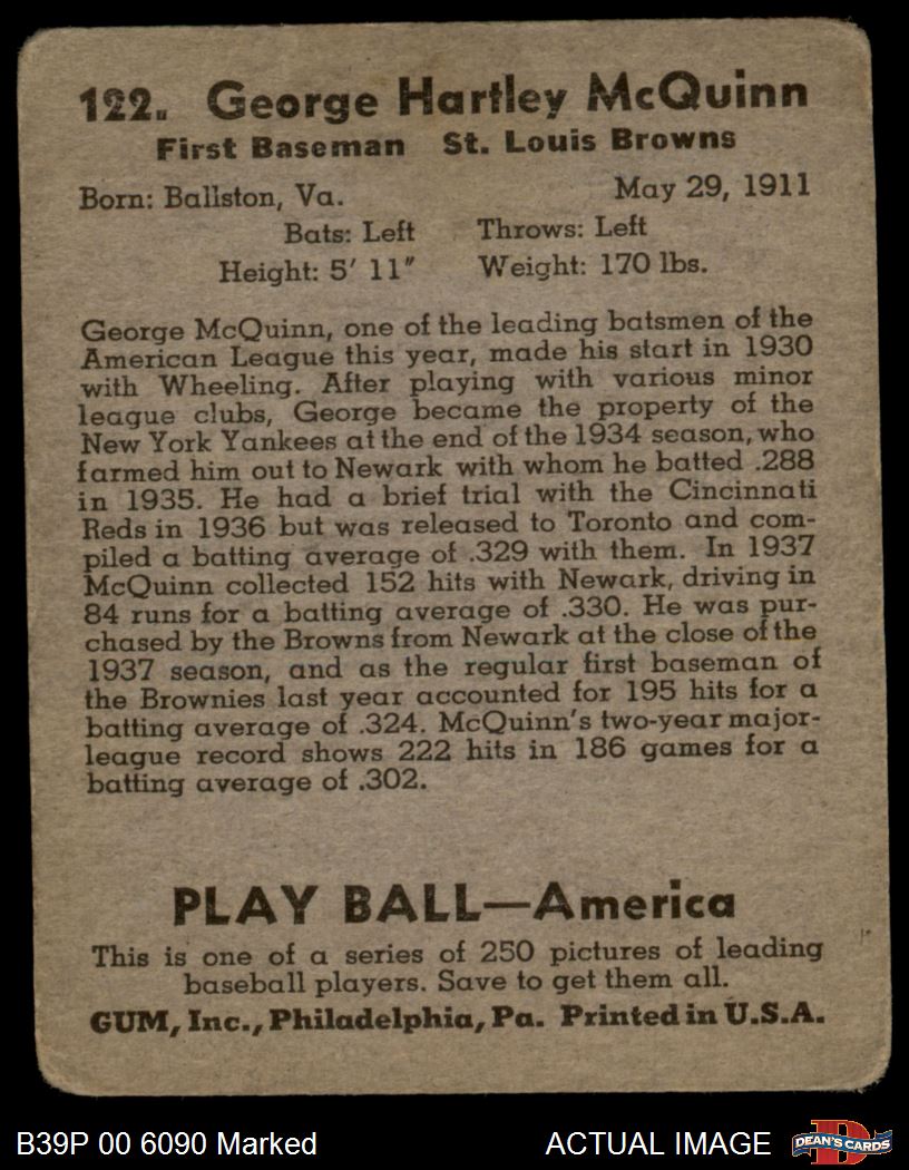 1939 Play Ball #122 George McQuinn 1 - POOR