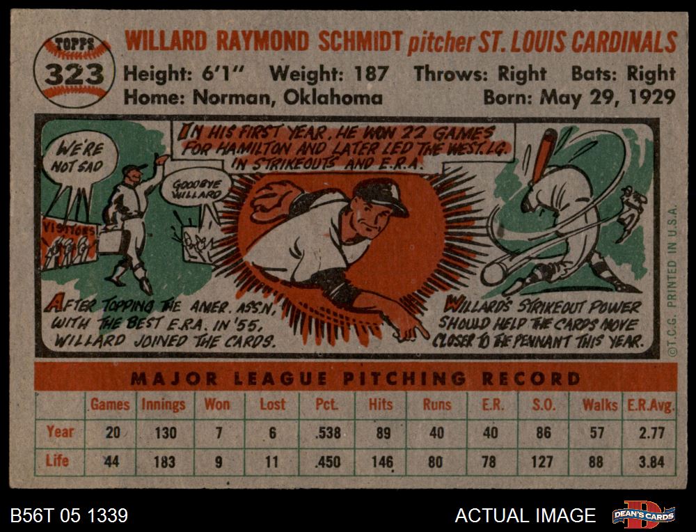 1956 Topps #323 MAJ Willard Schmidt