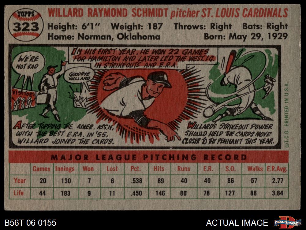 1956 Topps #323 MAJ Willard Schmidt 2 - GOOD