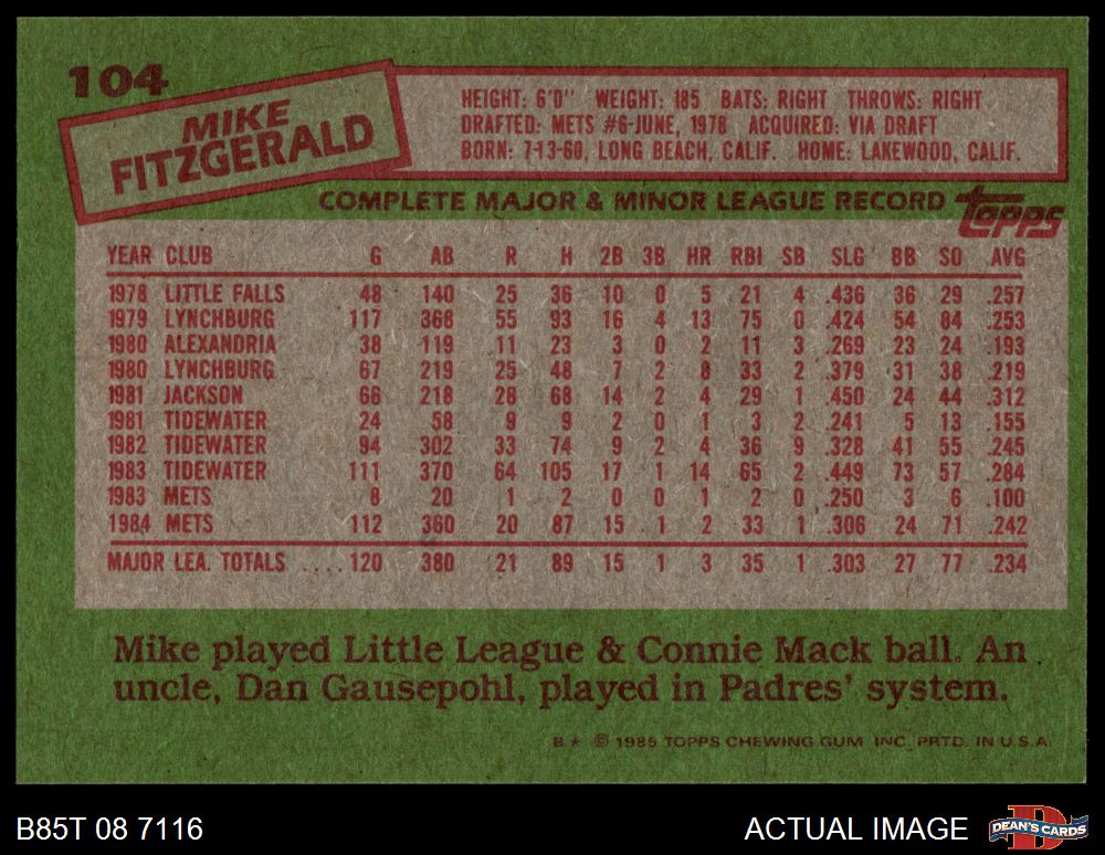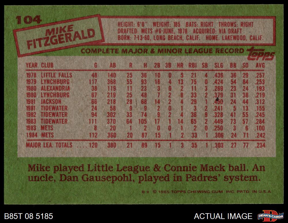 1985 Topps #104 Mike Fitzgerald 7 - NM