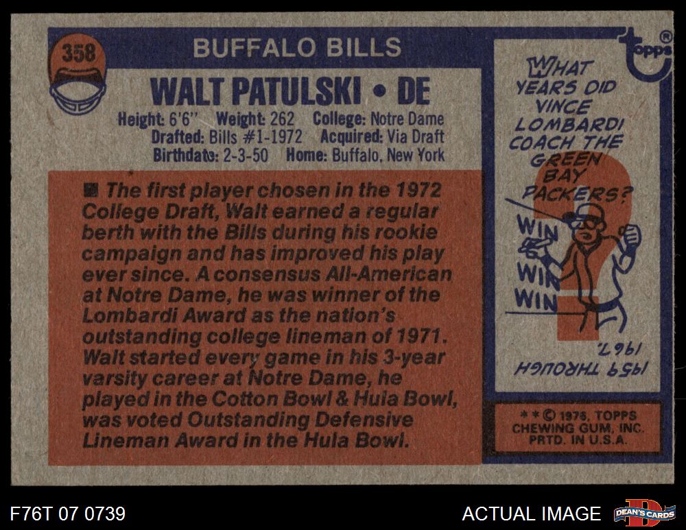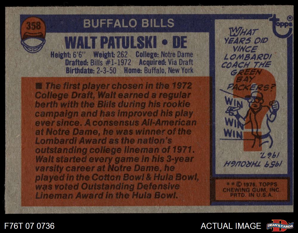 1976 Topps #358 Walt Patulski 5 - EX