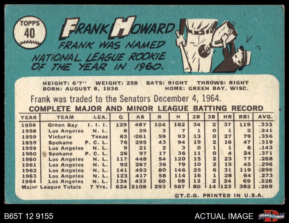 1965 Topps #40 Frank Howard Front Thumbnail