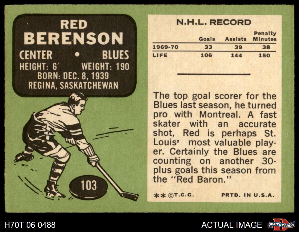 1970 Topps #103 Red Berenson 6.5 - EX/MT+