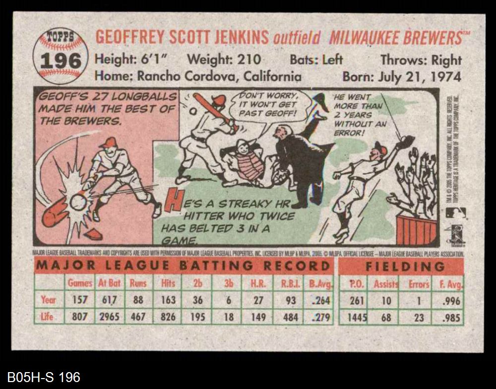 2005 Topps Heritage #196 Geoff Jenkins 8 - NM/MT