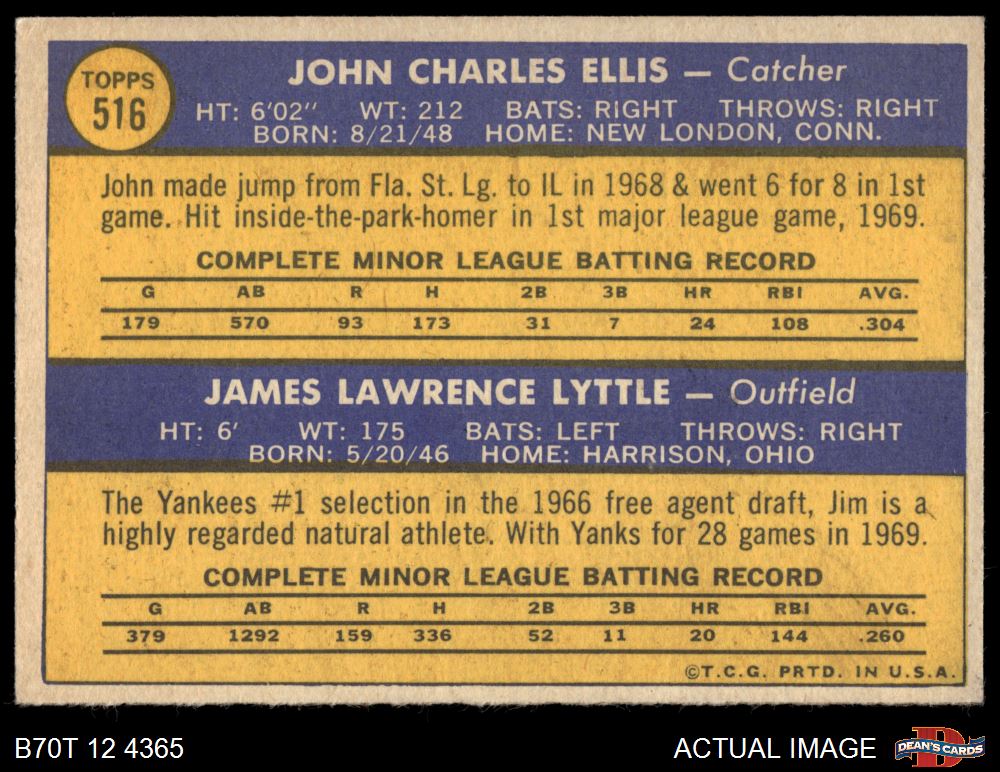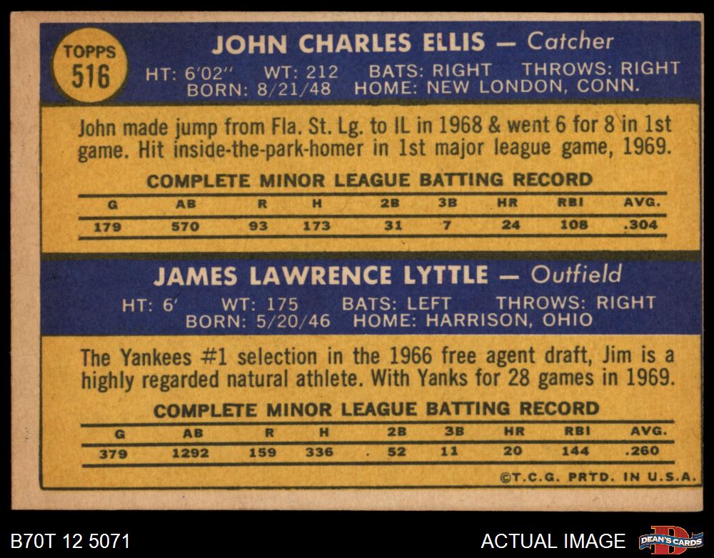 1970 Topps #516 - John Ellis / Jim Lyttle Yankees Rookies 4 - VG/EX