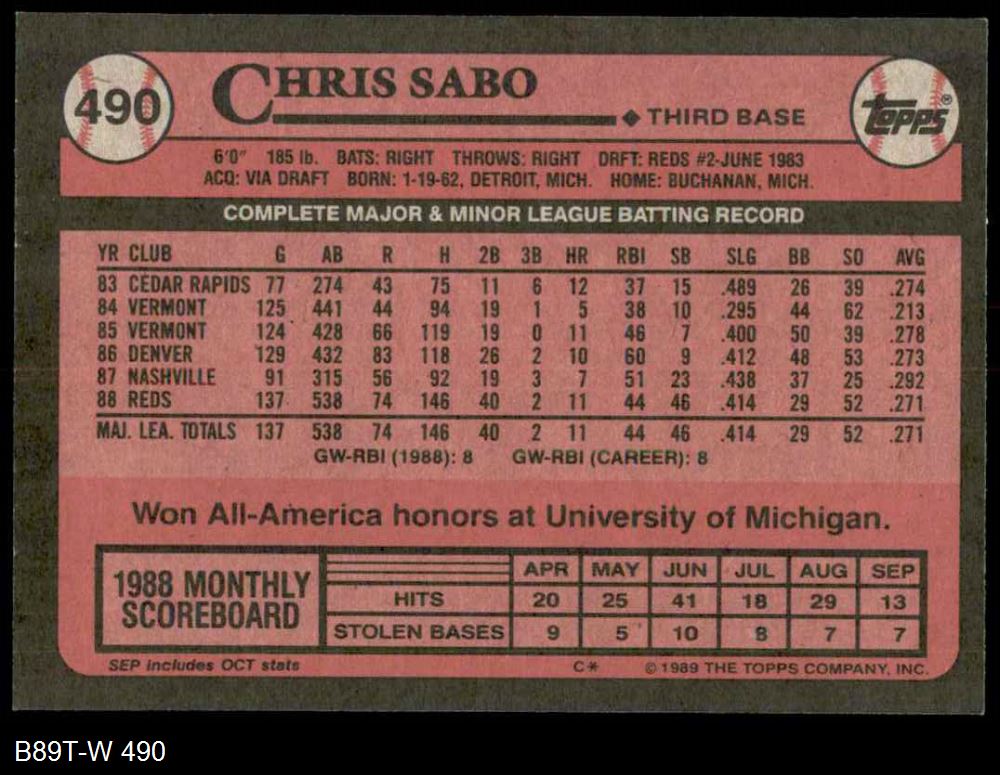 1989 Topps #490 Chris Sabo