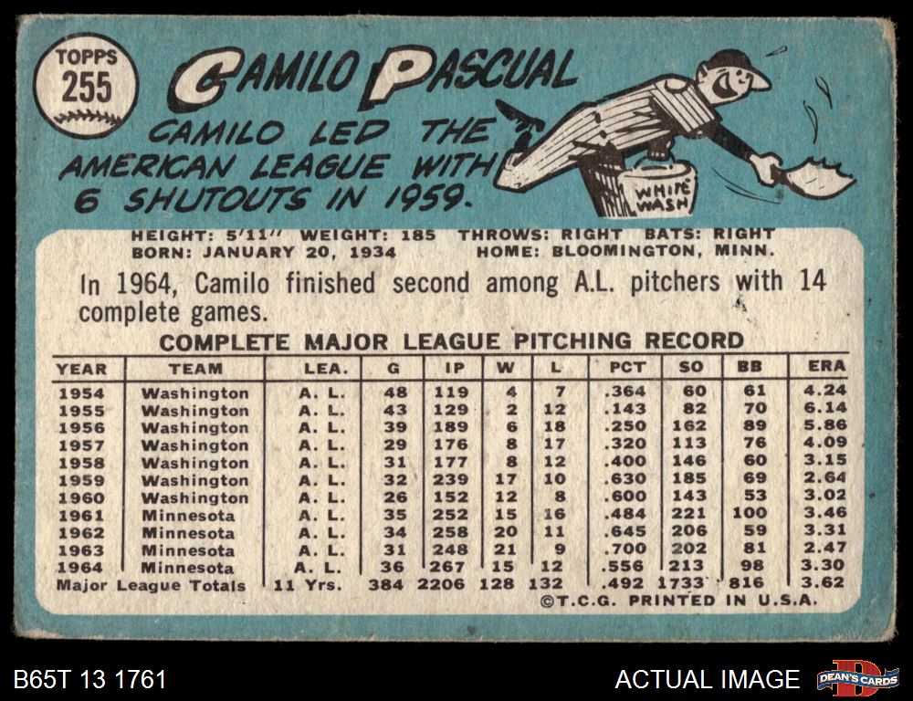 1965 Topps #255 Camilo Pascual 1.5 - FAIR