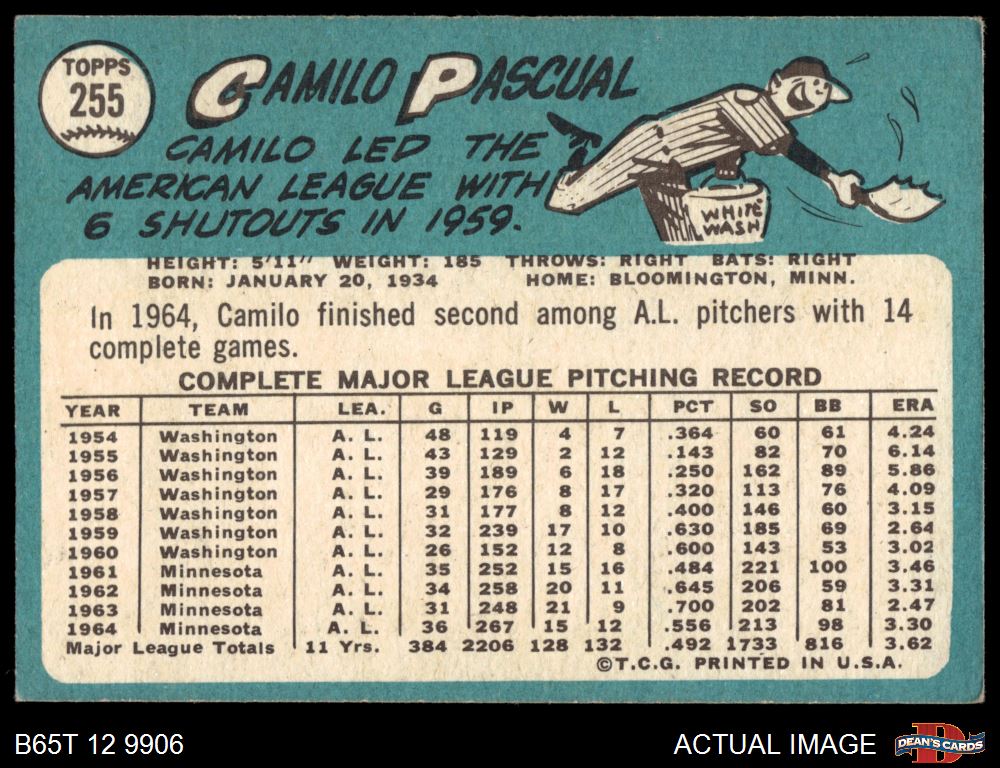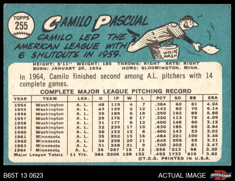 1965 Topps #255 Camilo Pascual