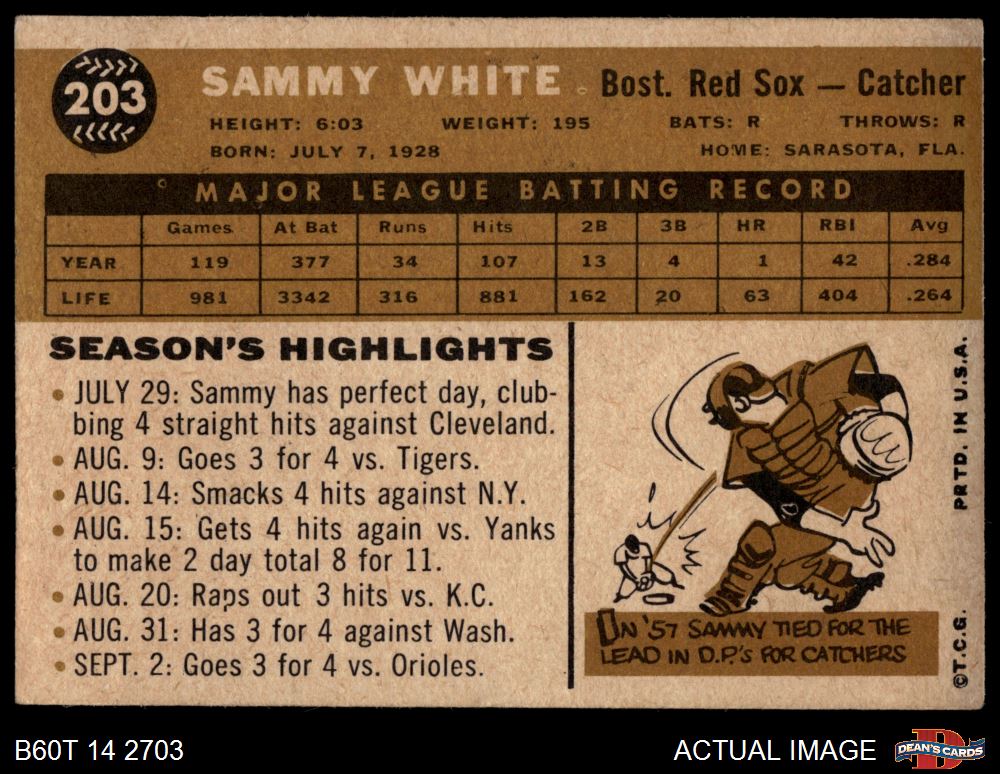 1960 Topps #203 Sammy White 1.5 - FAIR