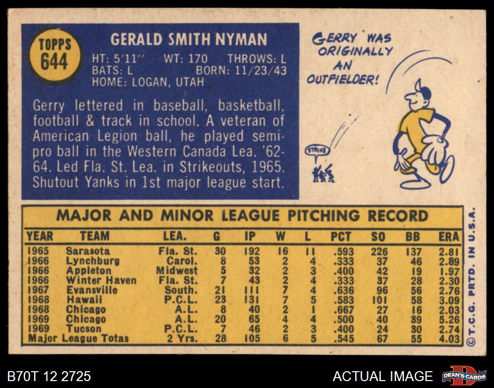 1970 Topps #644 Gerry Nyman 6.5 - EX/MT+