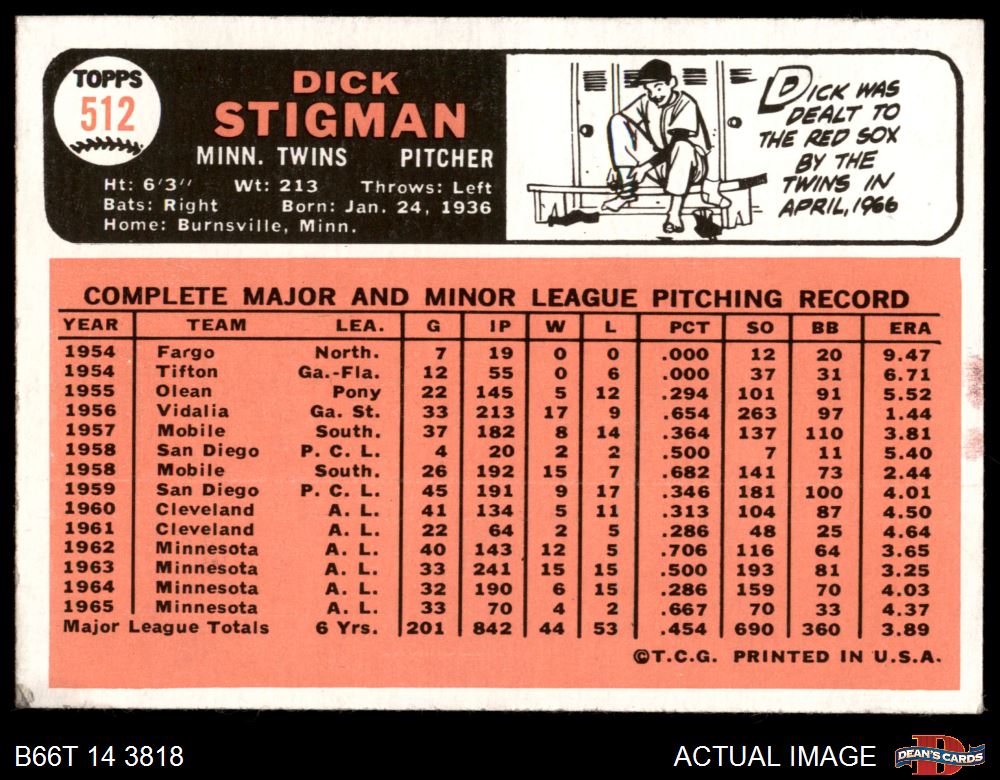 1966 Topps #512 Dick Stigman 2 - GOOD