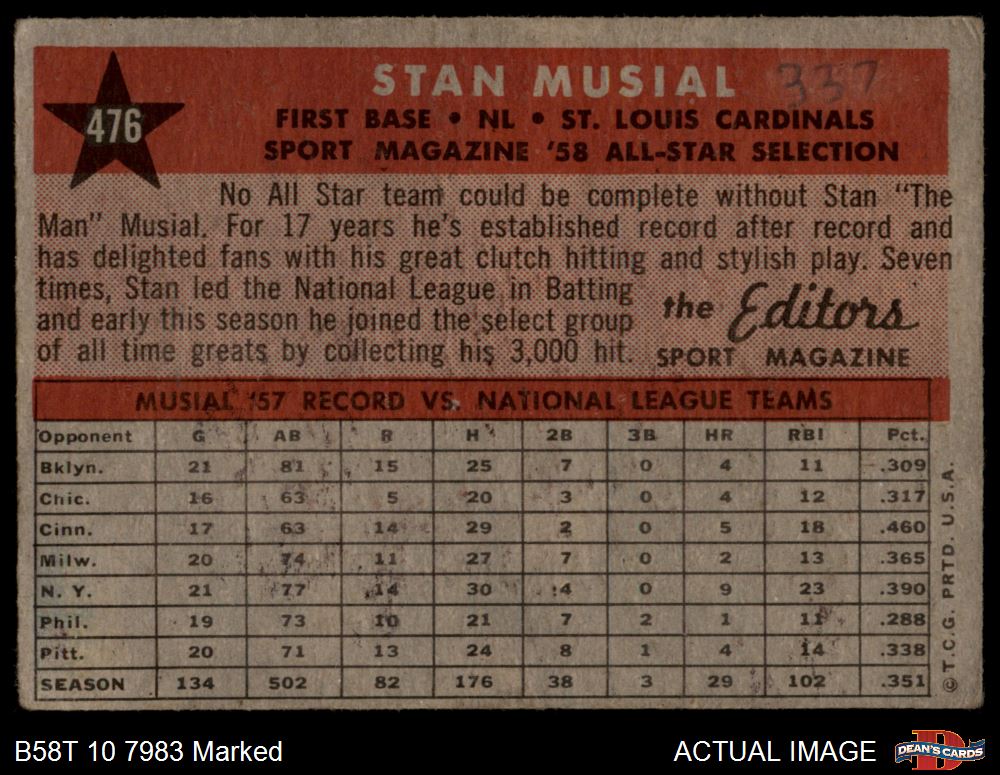 1958 Topps #476 - Stan Musial All-Star 1 - POOR