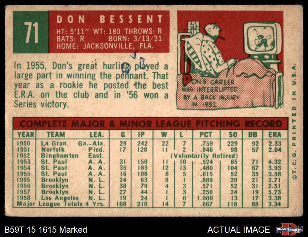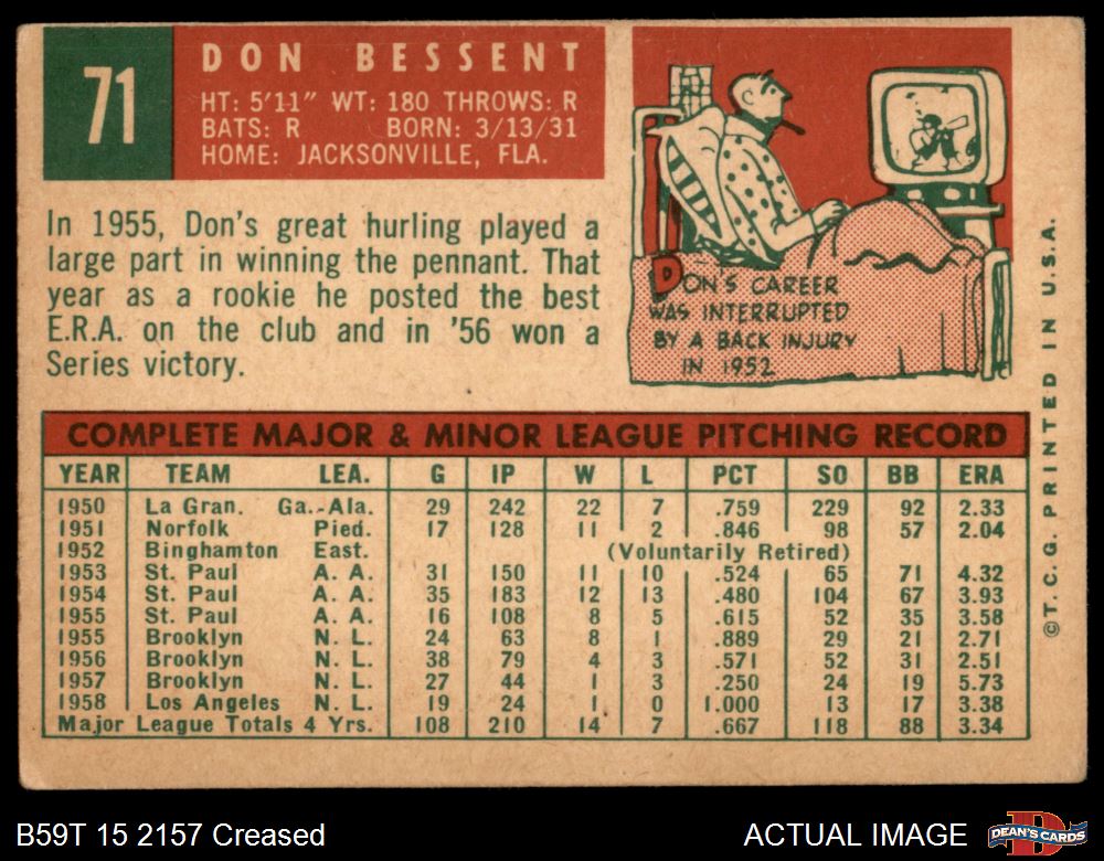 1959 Topps #71 Don Bessent 1.5 - FAIR