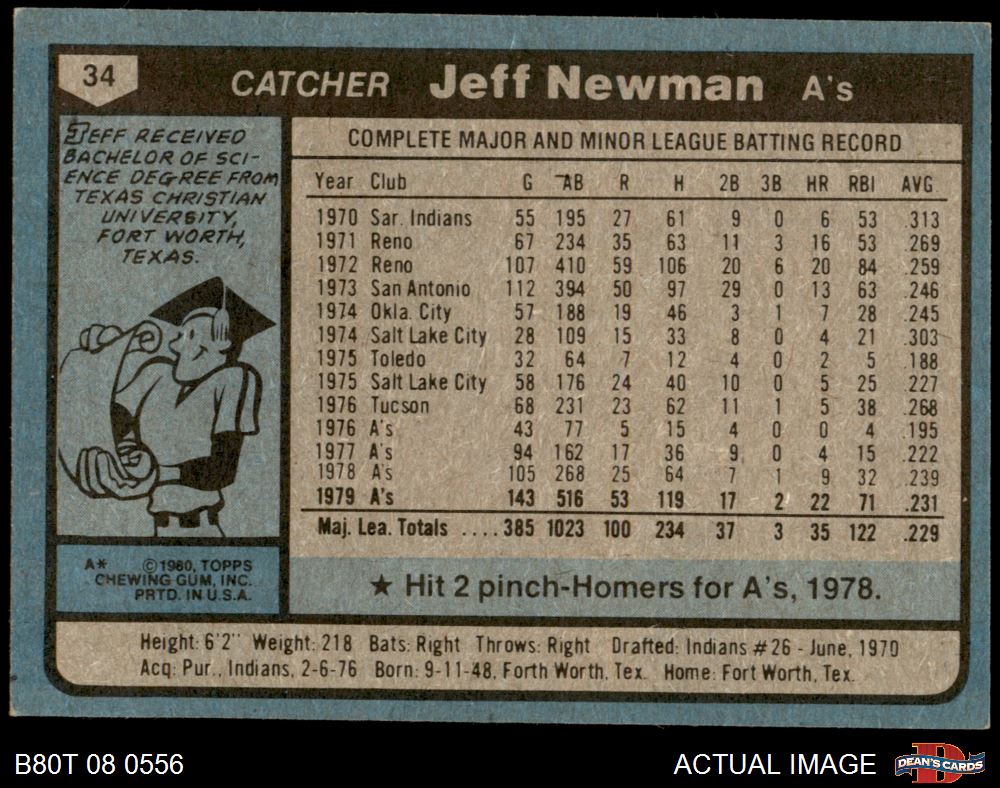 1980 Topps #34 Jeff Newman 6.5 - EX/MT+