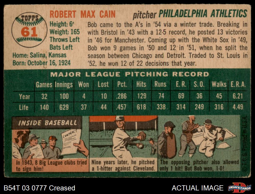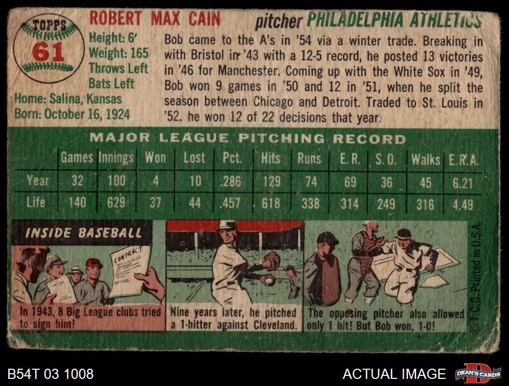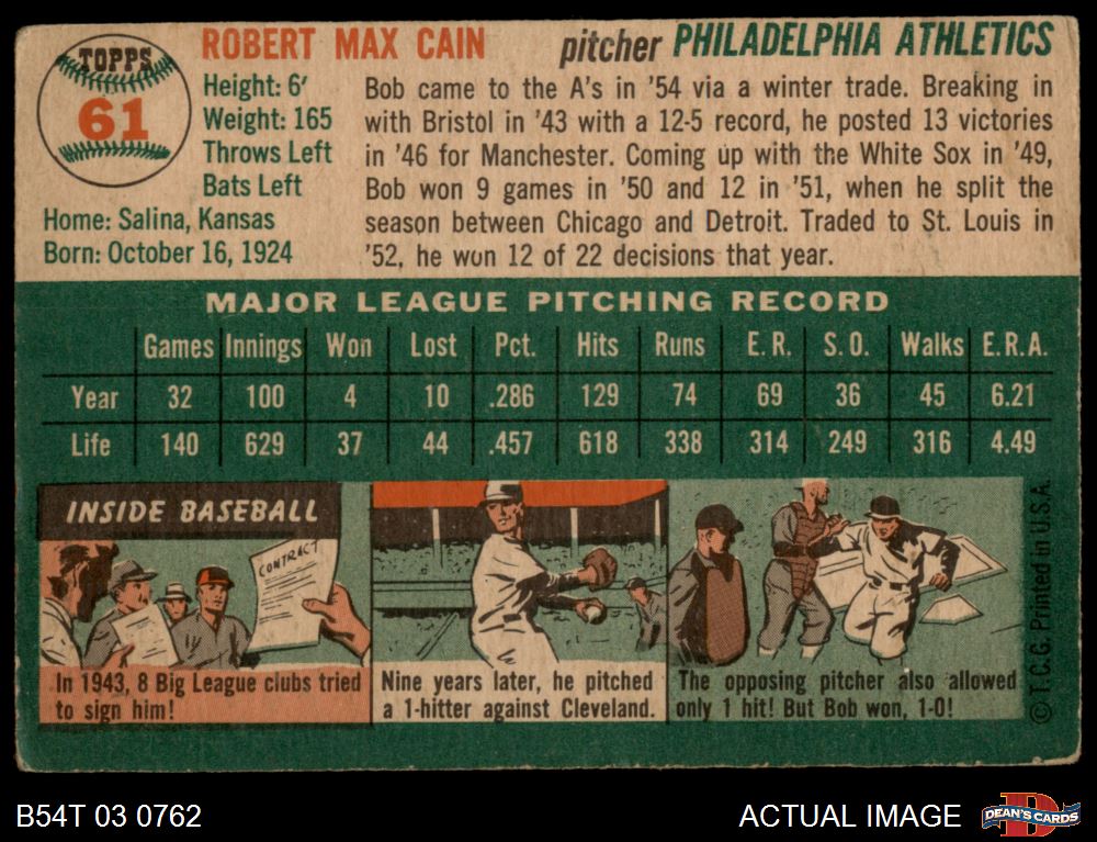 1954 Topps #61 Bob Cain
