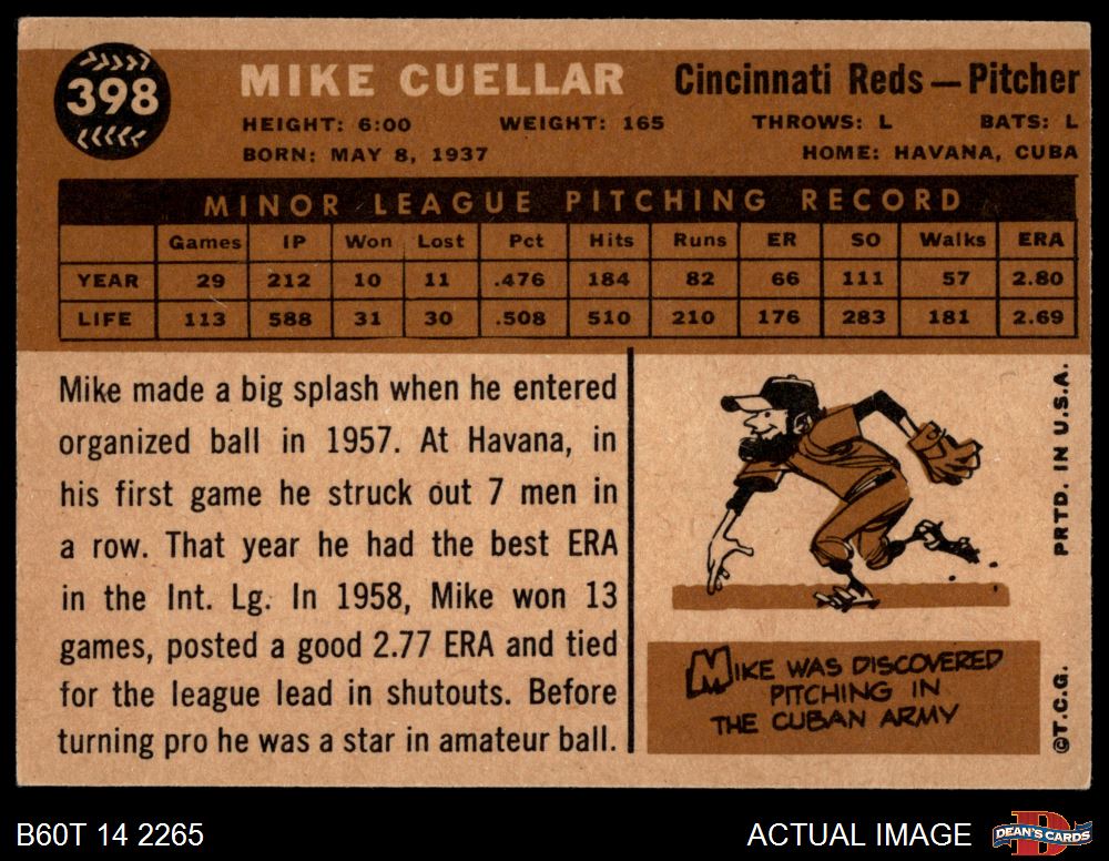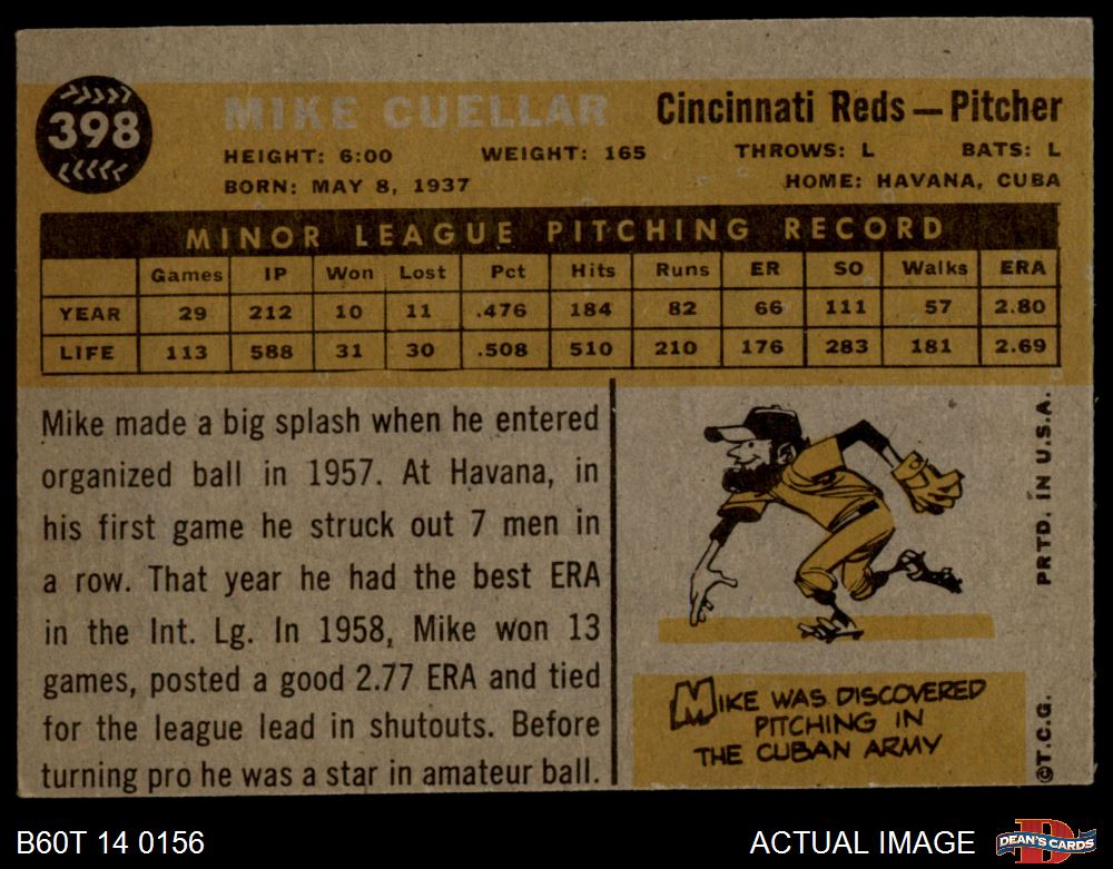 1960 Topps #398 Mike Cuellar 3 - VG