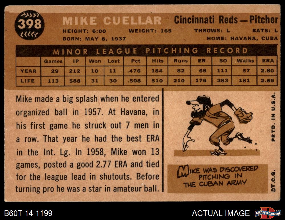 1960 Topps #398 Mike Cuellar 4 - VG/EX