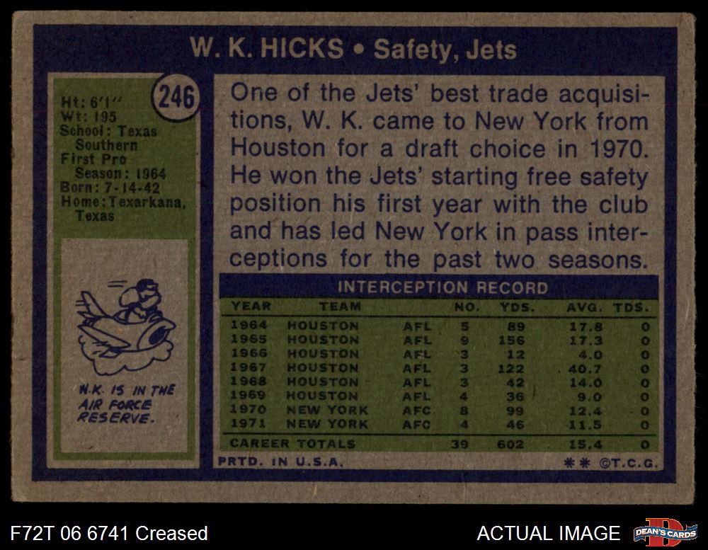 1972 Topps #246 W.K. Hicks 1 - POOR