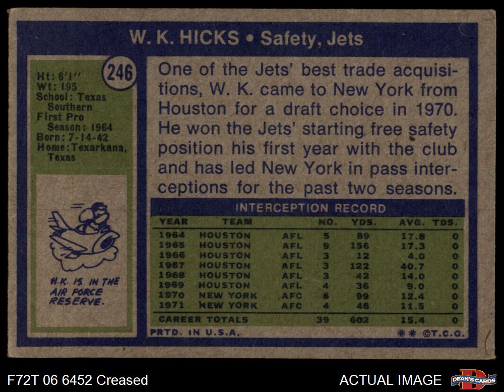 1972 Topps #246 W.K. Hicks 2 - GOOD