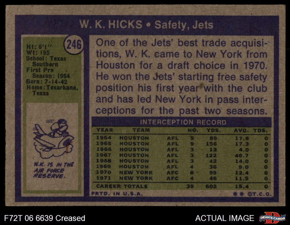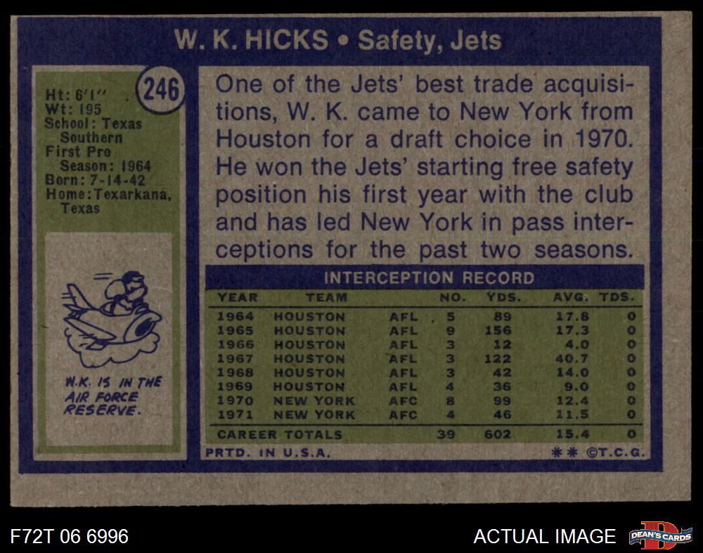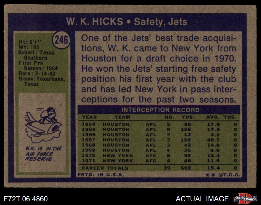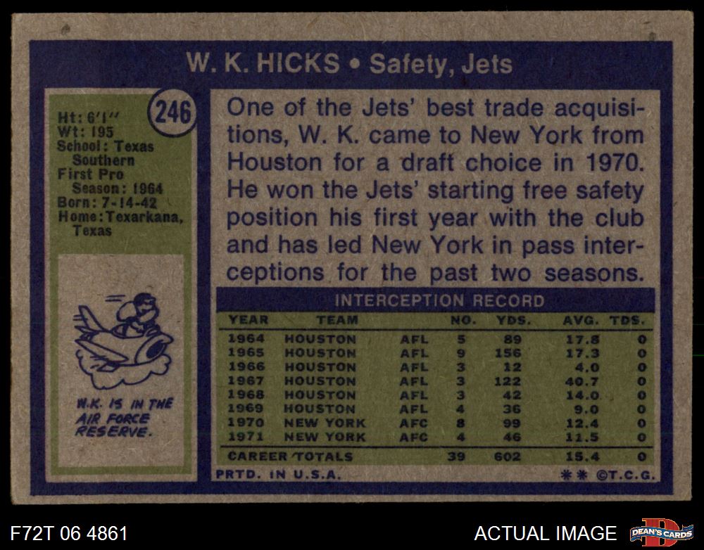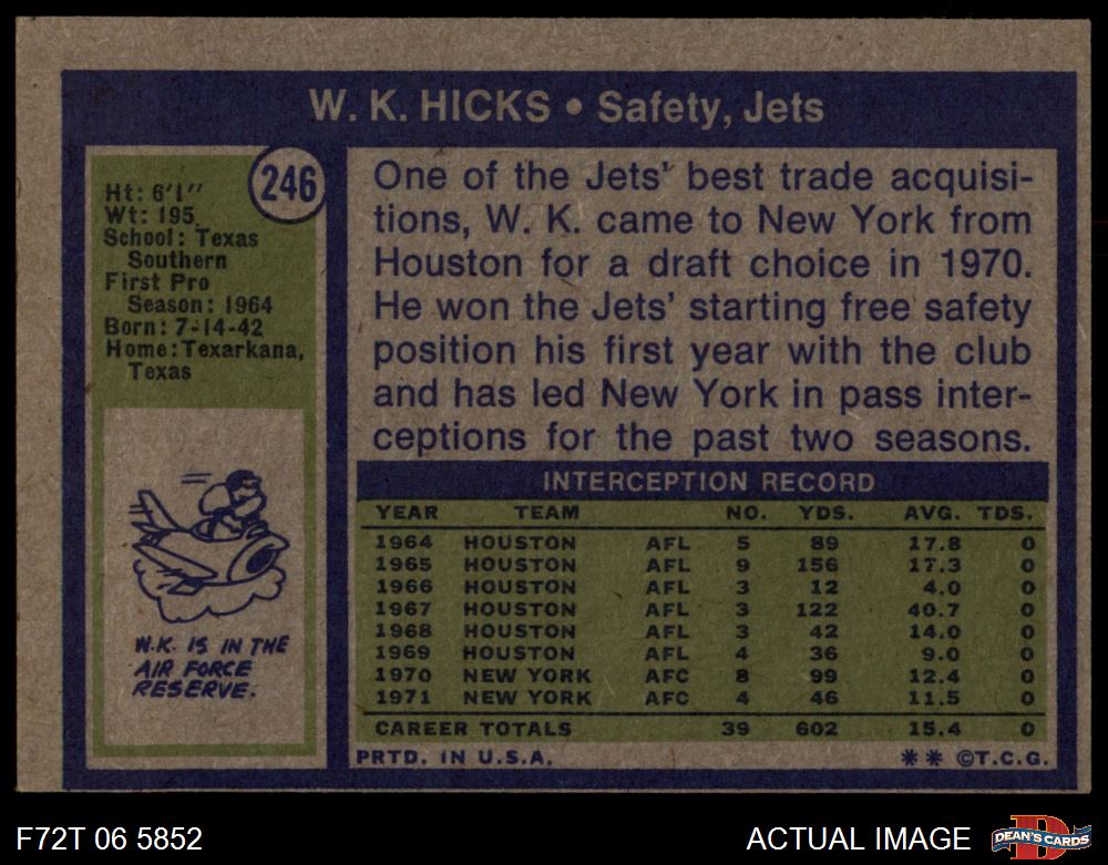 1972 Topps #246 W.K. Hicks 3 - VG