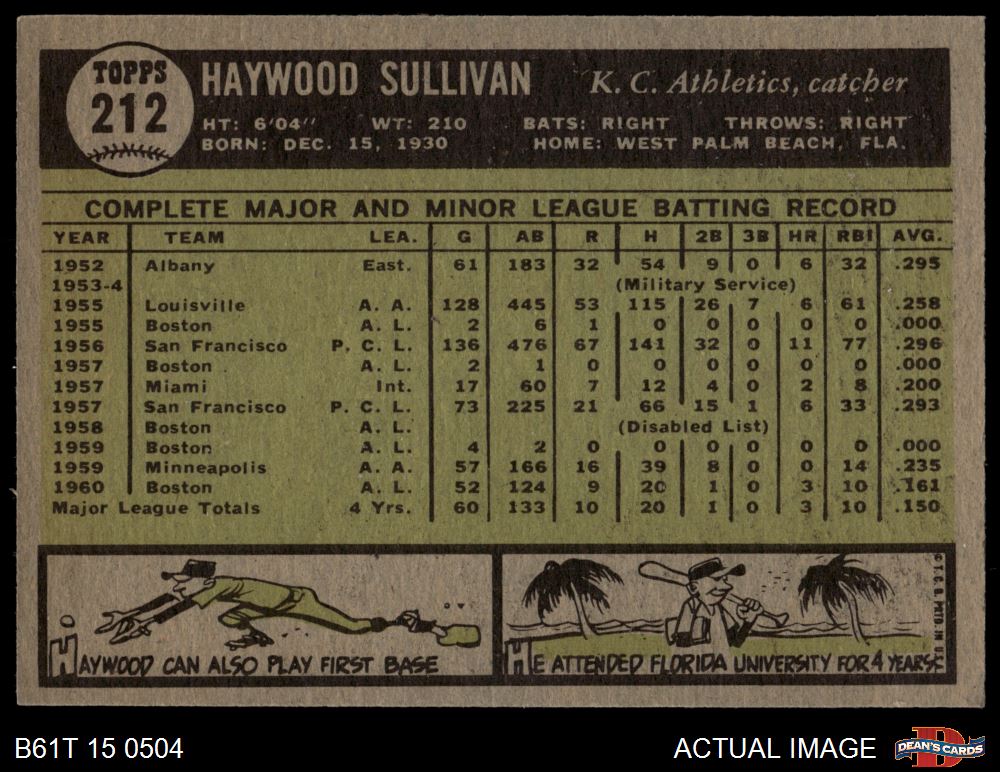 1961 Topps #212 Haywood Sullivan 6 - EX/MT