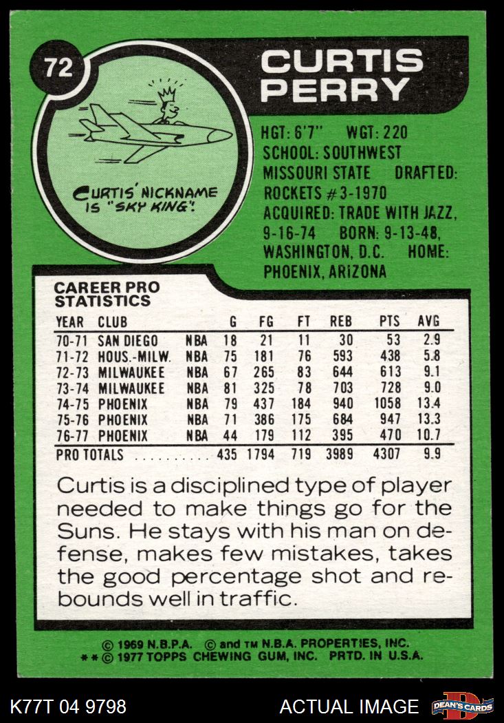 1977 Topps #72 Curtis Perry 6 - EX/MT