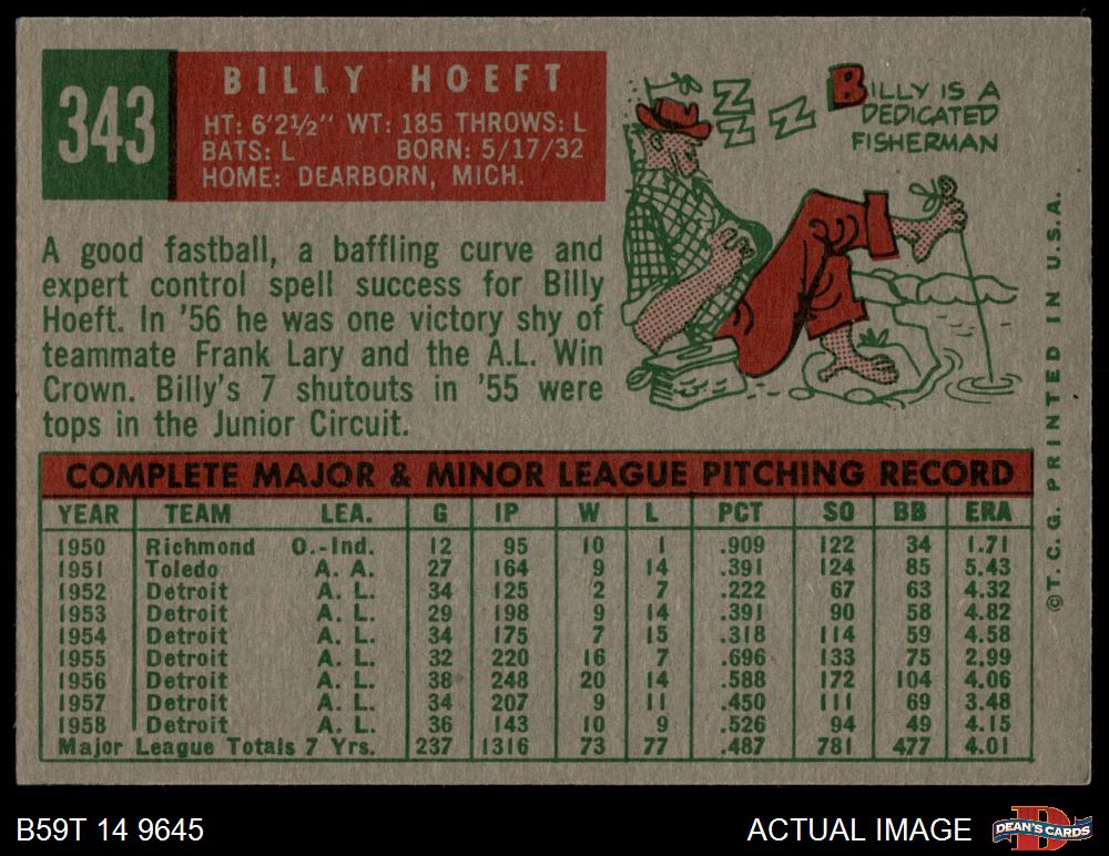 1959 Topps #343 Billy Hoeft 4 - VG/EX