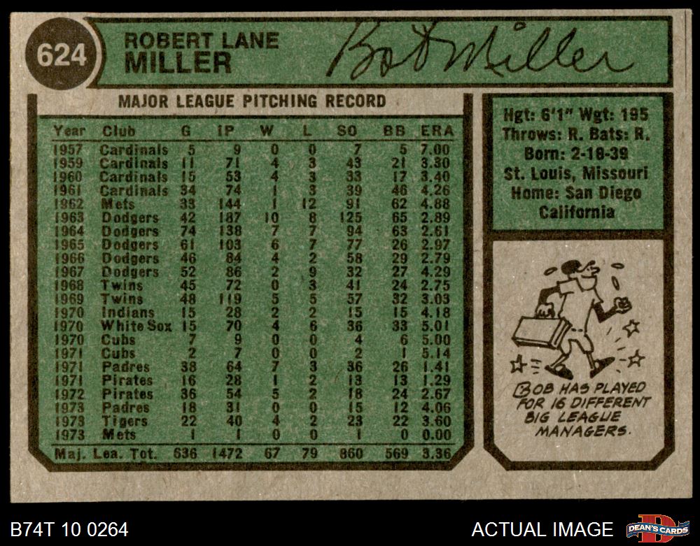 1974 Topps #624 Bob Miller 6 - EX/MT