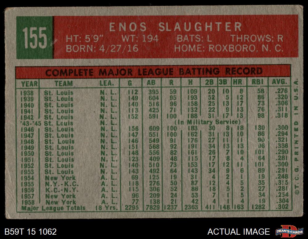 1959 Topps #155 Enos Slaughter 1.5 - FAIR