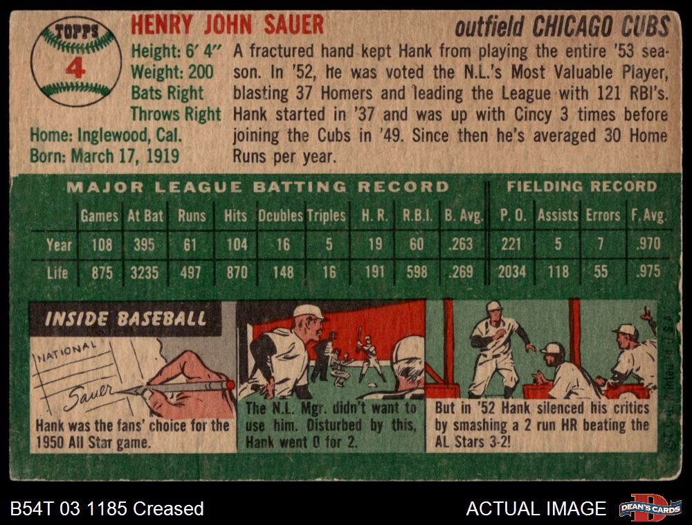 1954 Topps #4 WHT Hank Sauer 1.5 - FAIR