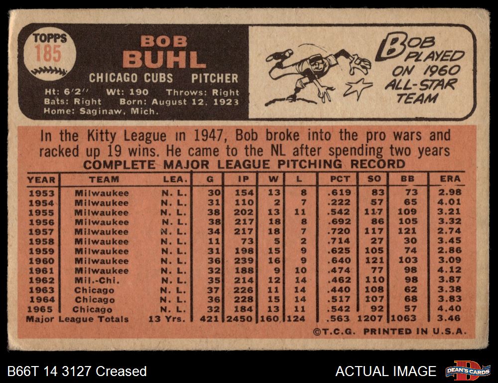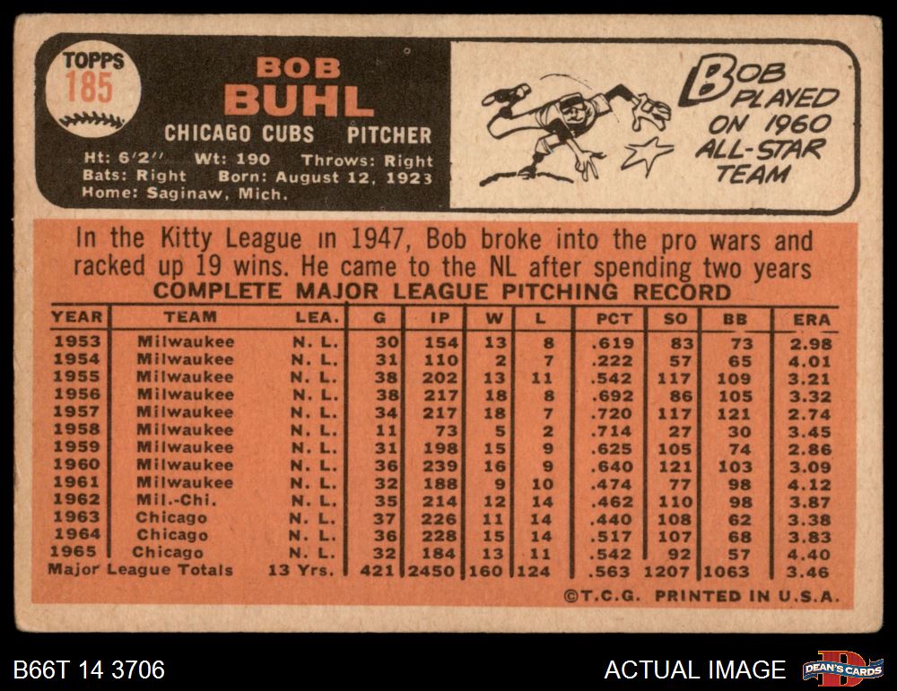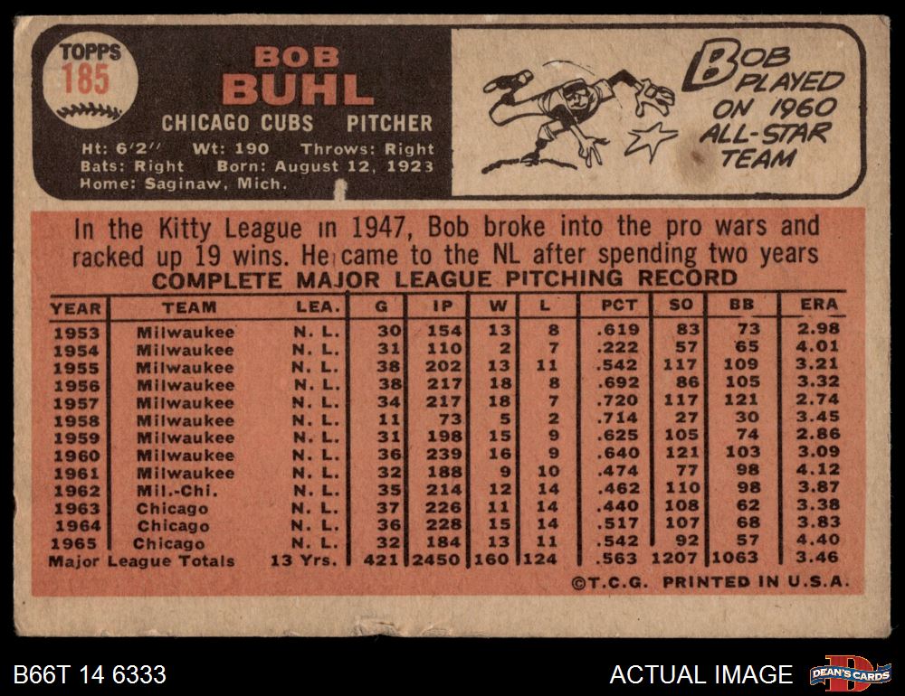 1966 Topps #185 Bob Buhl Front Thumbnail