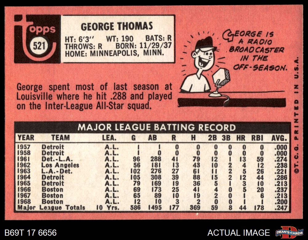 1969 Topps #521 George Thomas
