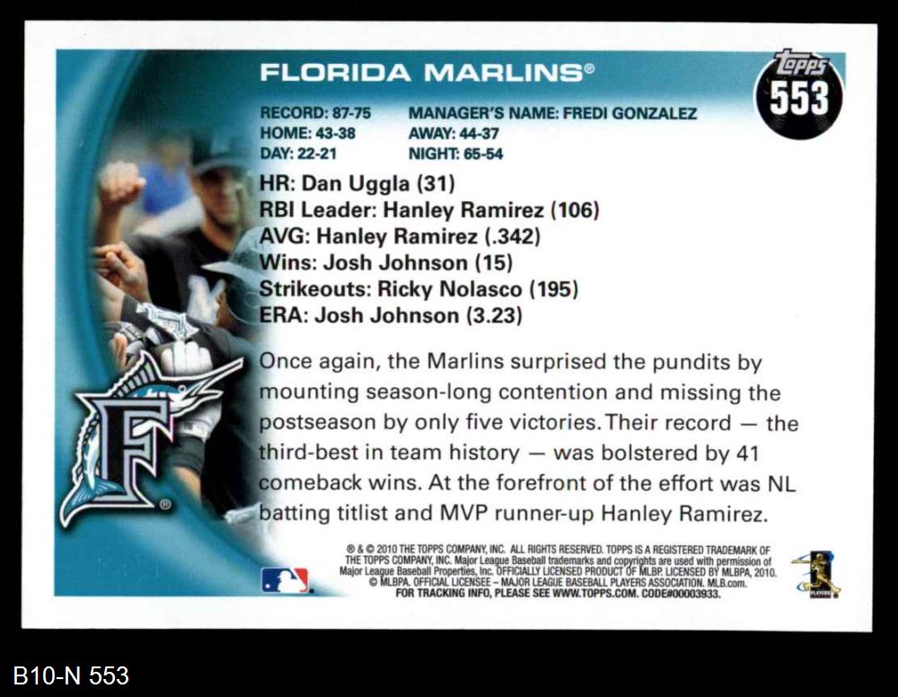2010 Topps #553 Marlins Team 8 - NM/MT