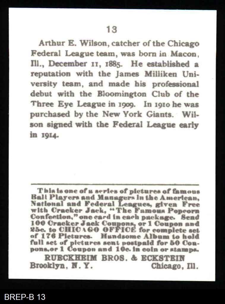 1915 Cracker Jack Reprint #13 Art Wilson 8 - NM/MT