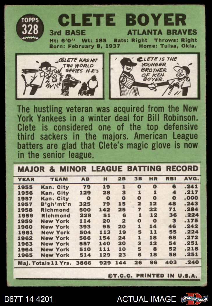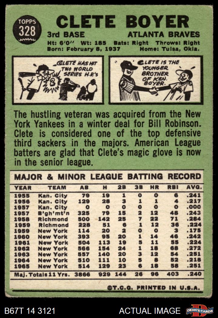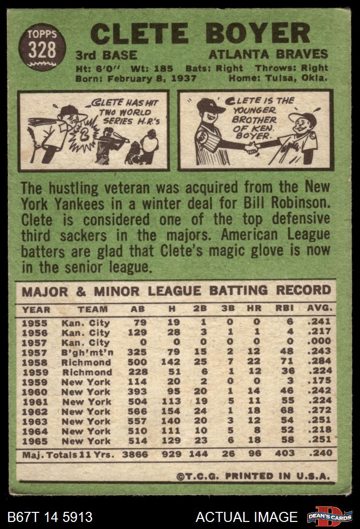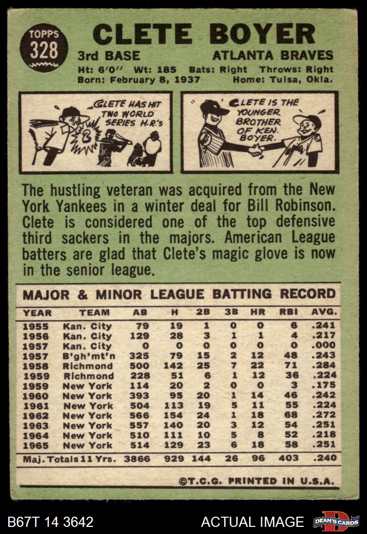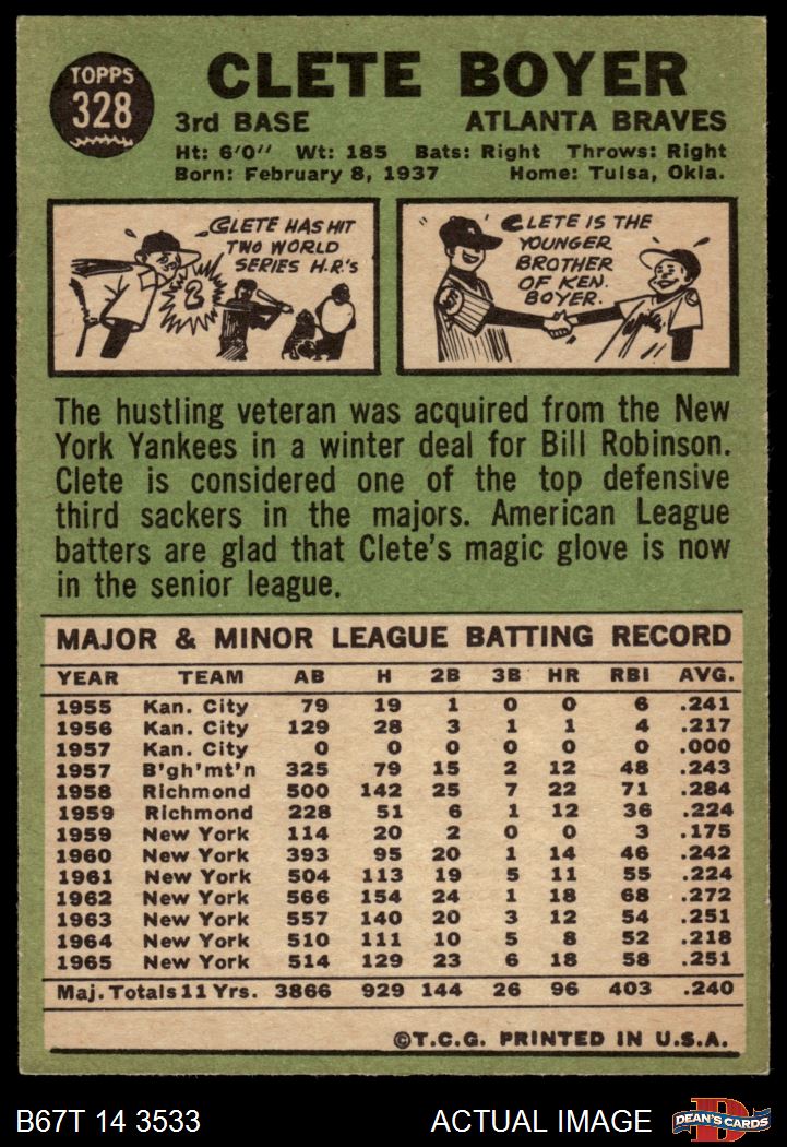 1967 Topps #328 Clete Boyer