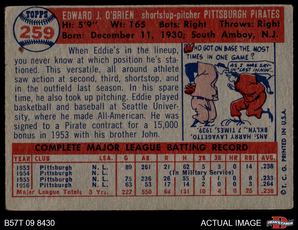 1957 Topps #259 Eddie O'Brien 2 - GOOD