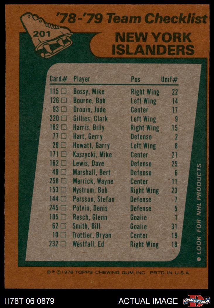 1978 Topps #201 Islanders Team Checklist